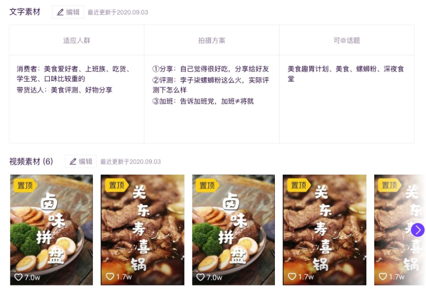 通过商品的适宜人群、拍摄方案、视频素材,让达人快速掌握商品拍摄技巧,带货更简单。