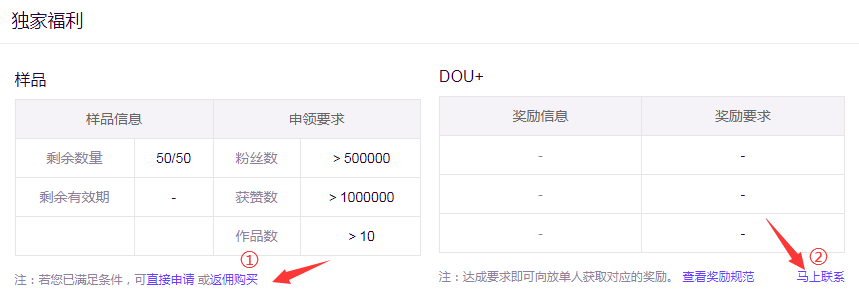 3)DOU+奖励需要在达到出单要求后,自行联系招商淘客/放单人获取奖励。(下图②处)
