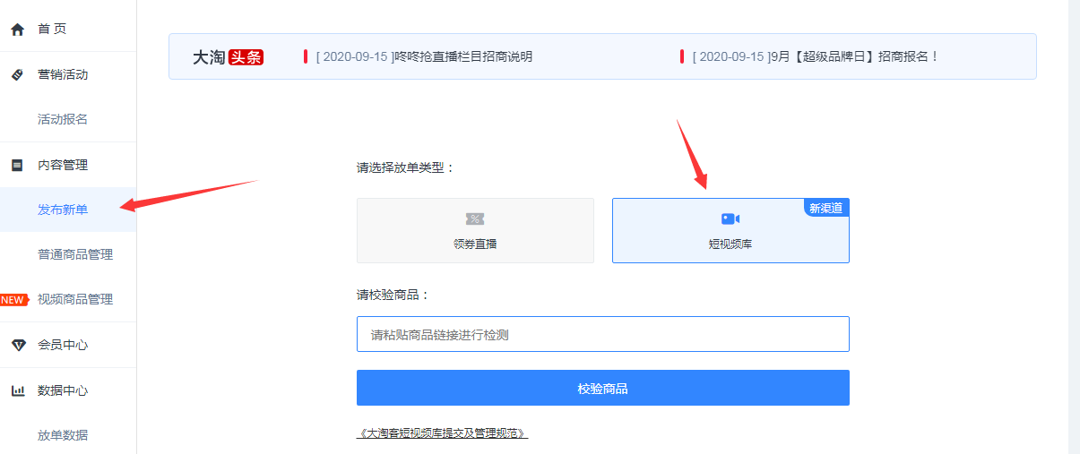 ②自媒体中心-发布新单-领券直播-同步短视频库补充相应信息