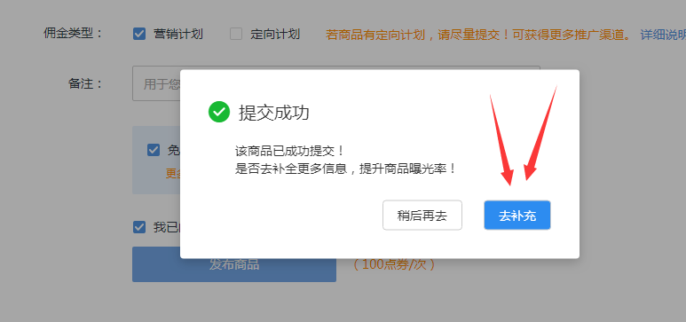 2、已提交平台未补充信息的商品