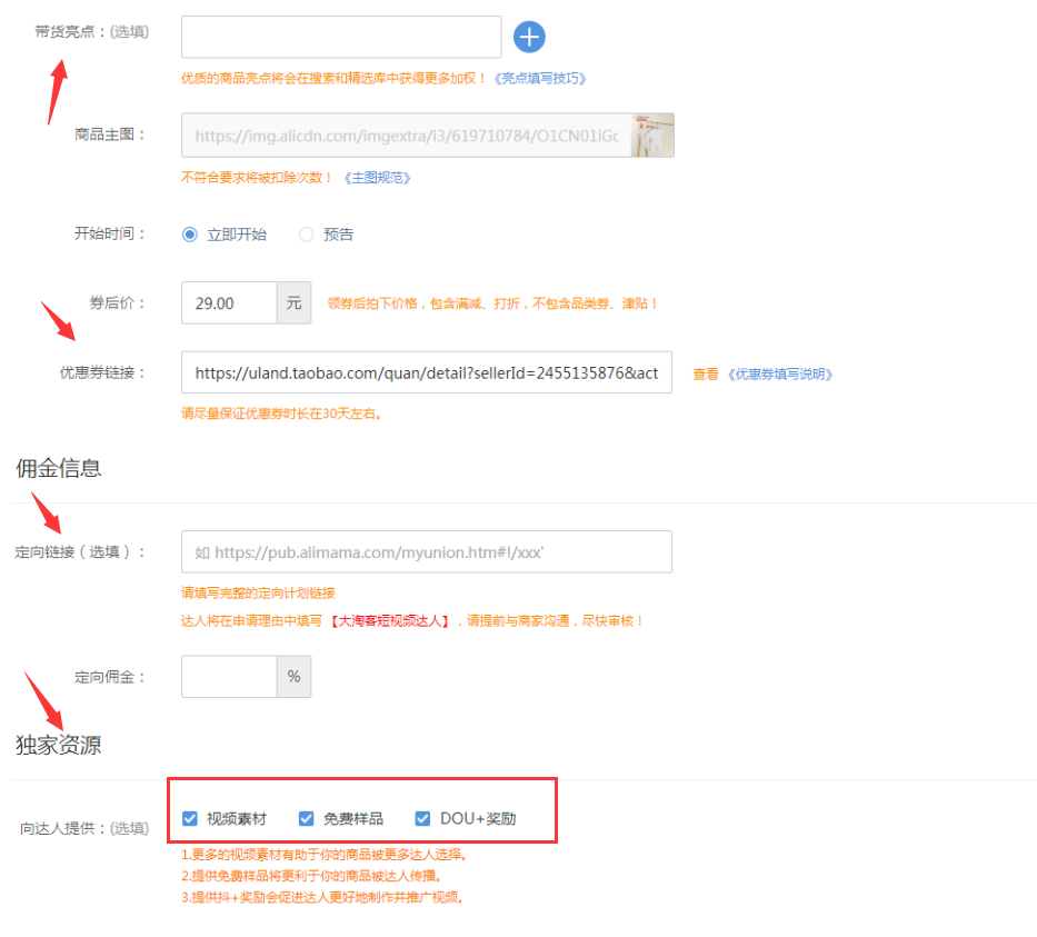 1)招商淘客(放单人)提供免费样品及DOU+奖励能有效提升达人带货积极性,加大出单几率,具体提交规范查看《DOU+奖励规范》填写。