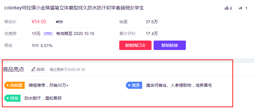 快速获取商品最大带货卖点,用作视频/直播文案,突出商品亮点加大转化。