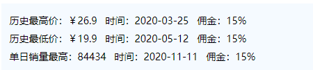 2、了解商品历史最低价、最高价及商品销量最高情况,掌握商品历史出单情况,进一步通过数据赋能招商推广。