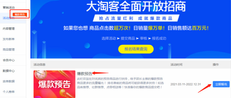 3、您报名的商品效果将面向推广淘客,直接体现您团体的招商选品能力,请认真选择;
