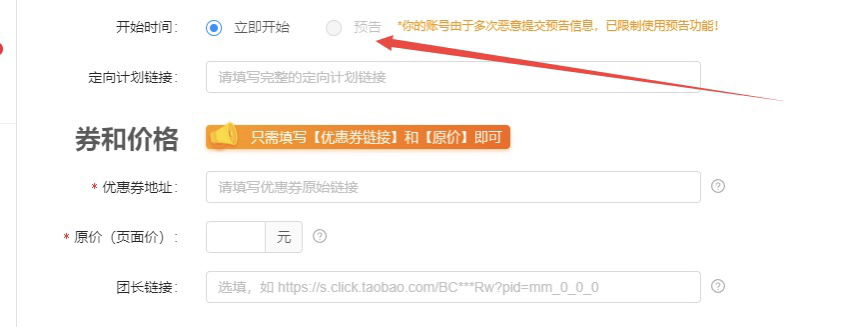 目前平台排查到部分招商淘客存在提交预告虚假高佣,实际上线为低佣或修改为低佣商品、提交无法使用的优惠券预告占位等一系列通过预告进行的恶意行为,为保障广大淘客朋友的利益,平台将对不遵守规范多次恶意提交预告商品的用户作出限制提交预告商品的处罚,具体情况如下: