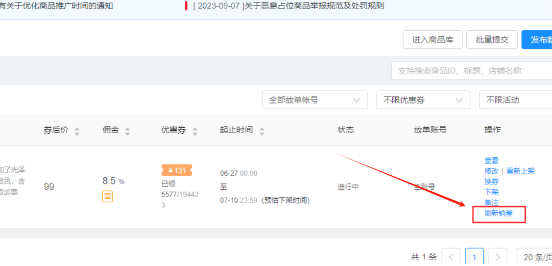 在目前平台商品销量自动刷新的频率下,有很多团长想快速在前端展示销量,为了进一步响应团长对部分商品销量数据实时性与准确性的需求,平台新推出了团长后台销量自助刷新功能,让您随时随地更新关注商品的销量数据。