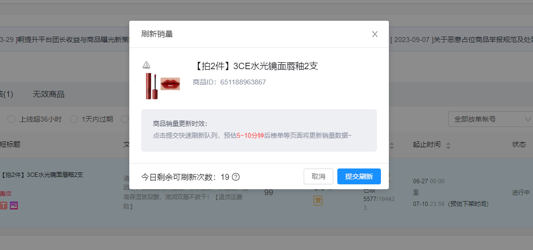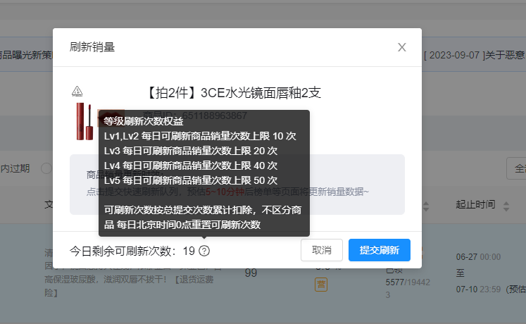 •高效反馈:刷新请求提交后,预计在5-10分钟左右,榜单及商品详情页面将同步更新销量信息,确保数据的及时展现。