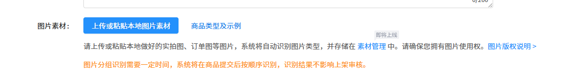 一、图片素材定义 图片素材包括但不限于商品开箱图、买家实拍、场景使用图、商超同款、凑单指印、特殊活动参与指引等,图片可拼接。二、图片素材提交方式:1、发布新单页面中直接提交进行展示;2、也可在商品审核上架后,在“我的商品列表”-操作一列中,点击“修改”按钮进行添加;如图所示: