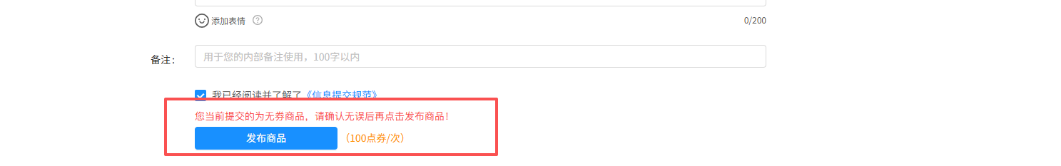 “您当前提交的为无券商品,请确认无误后再点击发布!”
