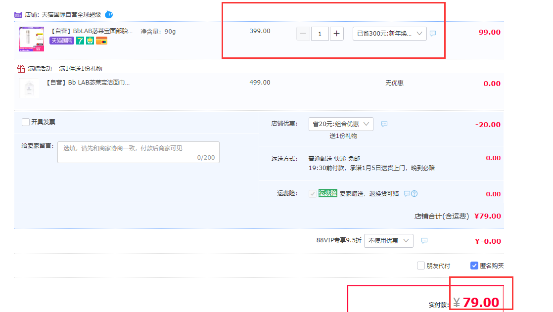 优惠券20元,天猫国际不计算税费,所以券后价为195元