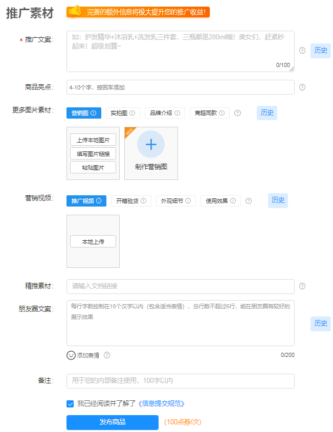 四、填写推广素材(更完善的额外素材信息,将提升推广收益)