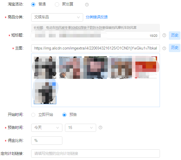 2)立即开始的商品有系统扫描佣金,无须填写,预告商品需要填写佣金;
