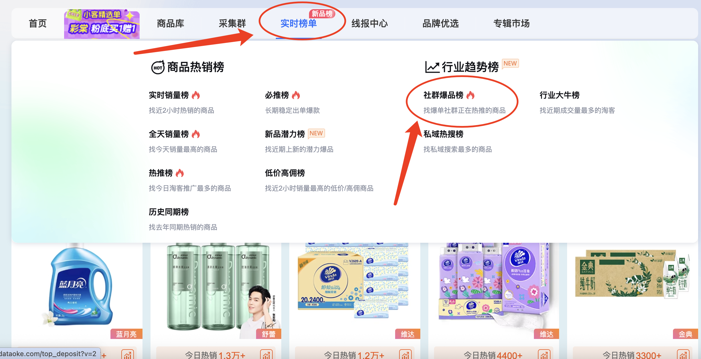 ☛ 常规入口:实时榜单→行业趋势榜→社群爆品榜(必存!)