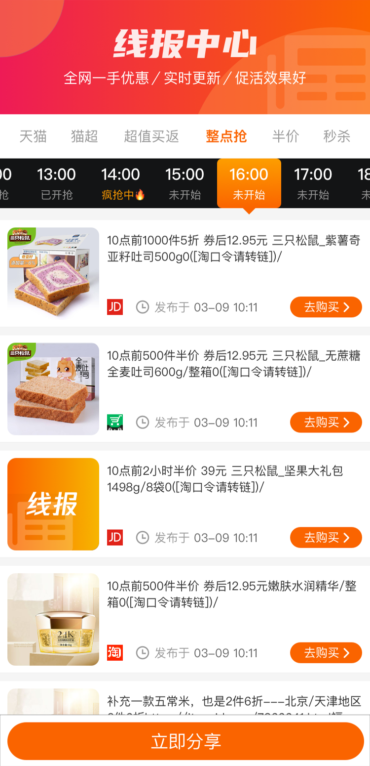 单页特色:全网一手优惠信息,实时更新,羊毛党必备