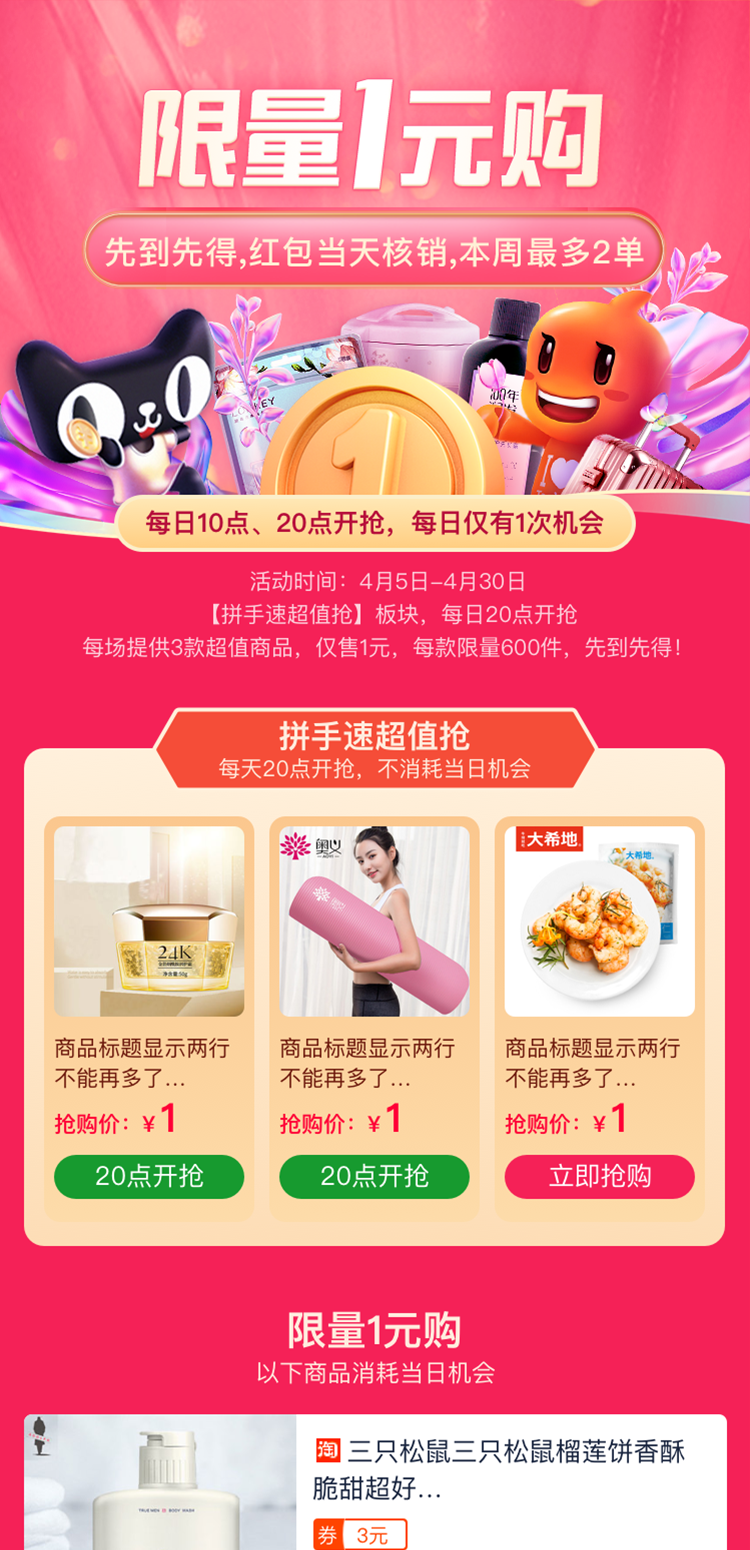 单页特色:官方超低价格商品合集,限时秒杀,拉新促活好帮手