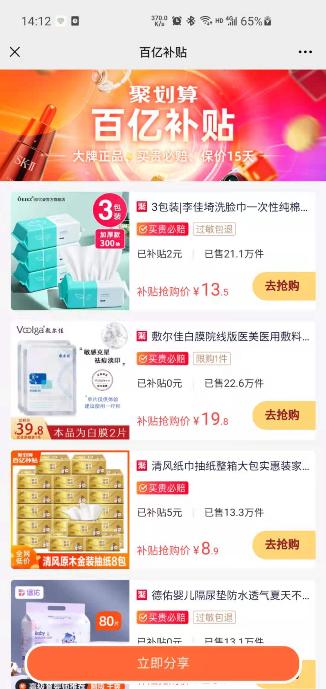 单页特色:官方补贴+大牌正品 ,高转化高留存,拉新促活必备神器