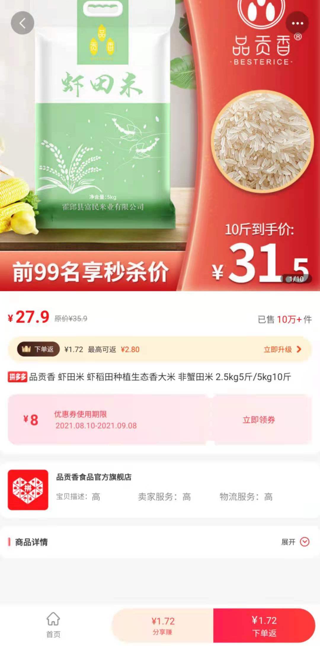 使用场景:当用户点击某个拼多多商品时,调用该接口。获取对应商品的详细信息