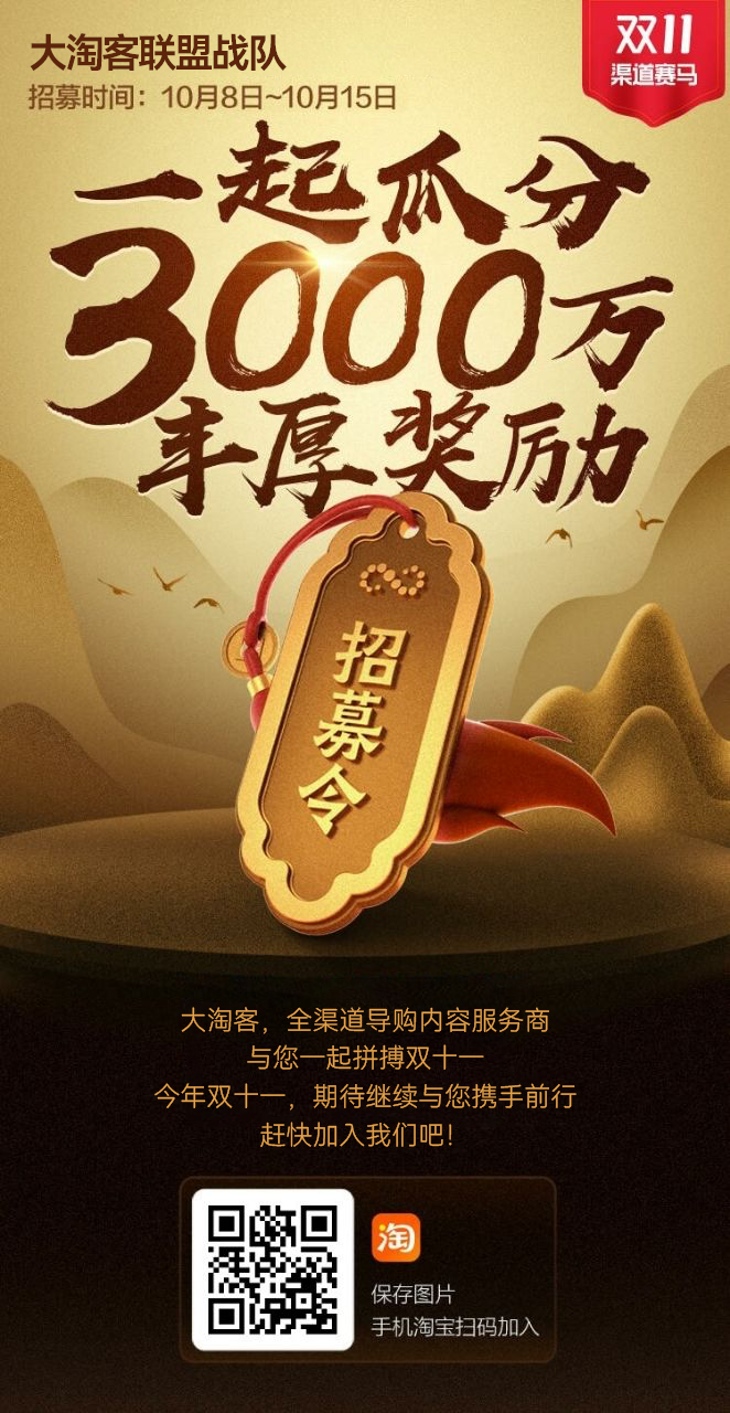 在618淘宝联盟赛马活动中,因为有大家共同的努力与奋斗,我们一起荣获了“最佳飞跃奖”。双11赛马我们更要一起并肩前行,再创辉煌。在此,大淘客诚邀各位家人们加入我们共同的队伍,为下一个荣誉而战!