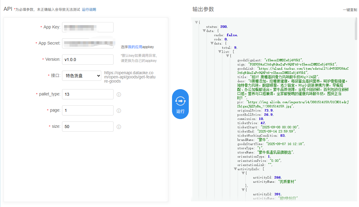 当您在调用特色货盘接口时,传入 pallet_type=1--13 时,接口将返回平台每个爆品维度的商品货盘。这些商品经过平台数据结合AI分析严格筛选,能为您的特色栏目提供优质的商品资源。