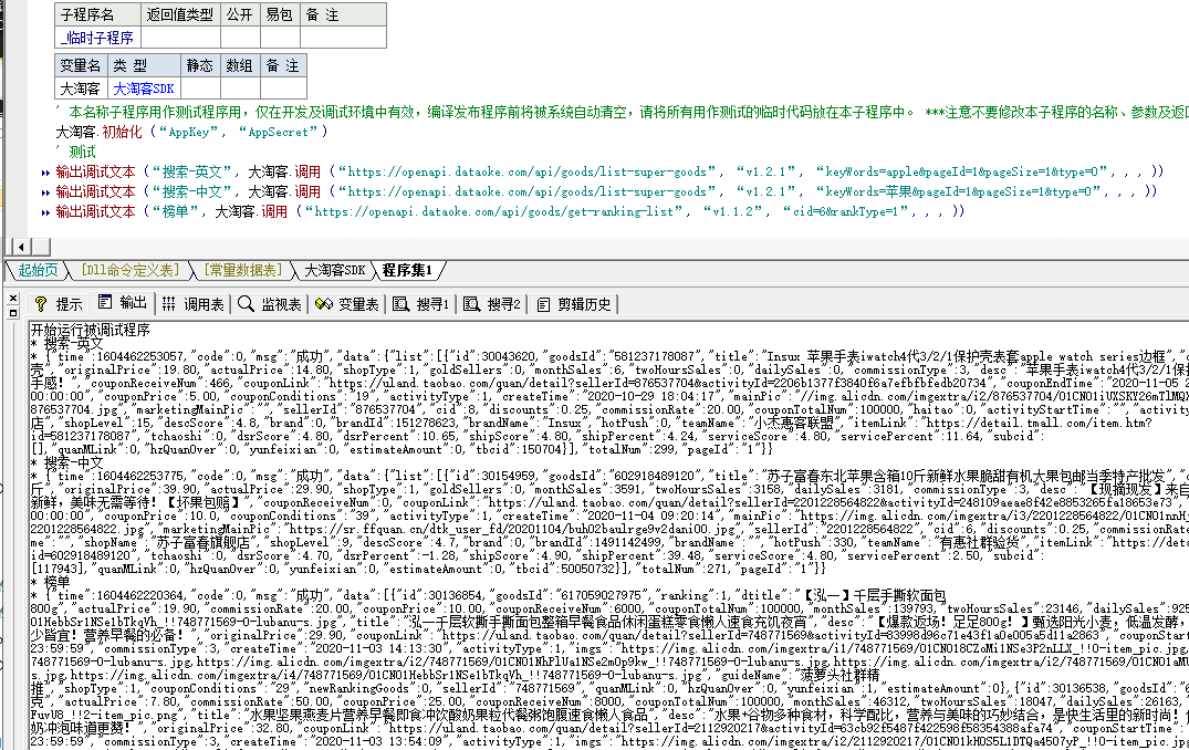 注意事项:请将AppKey和AppSecret替换成自己。