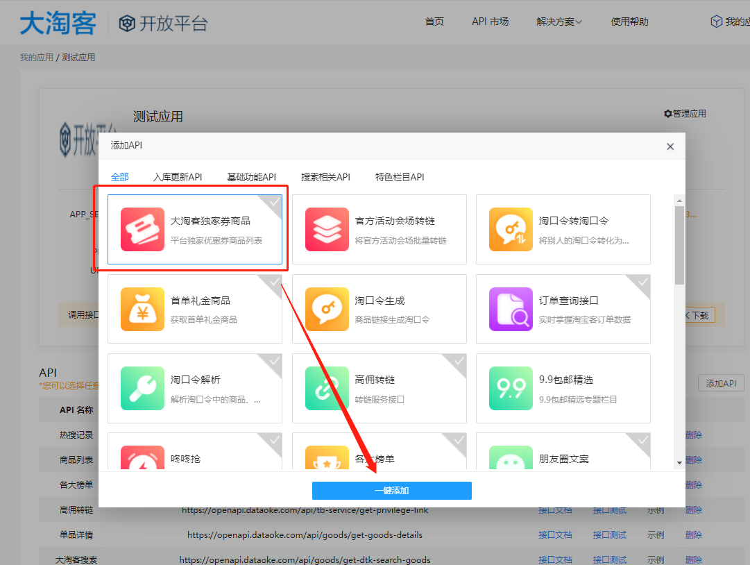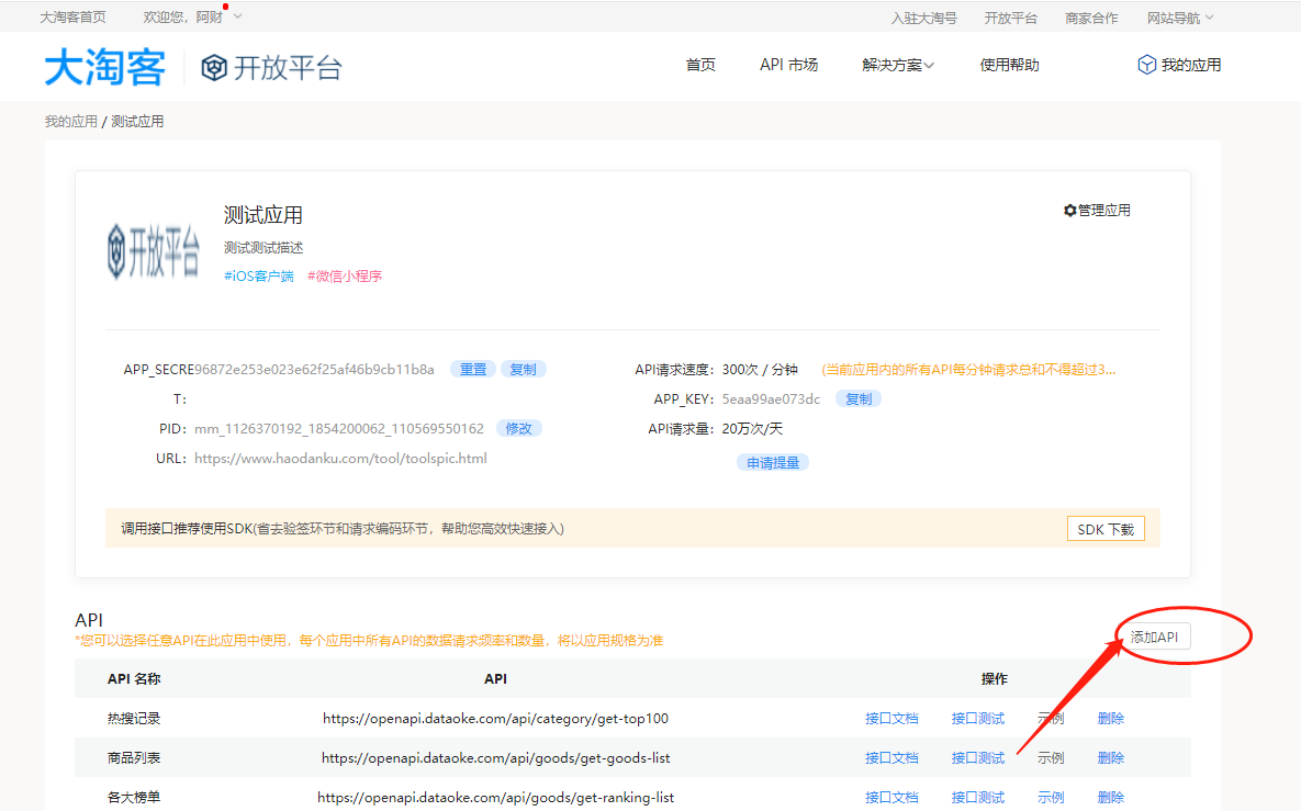 第二步:客服告知添加成功后,在应用里添加内测接口;