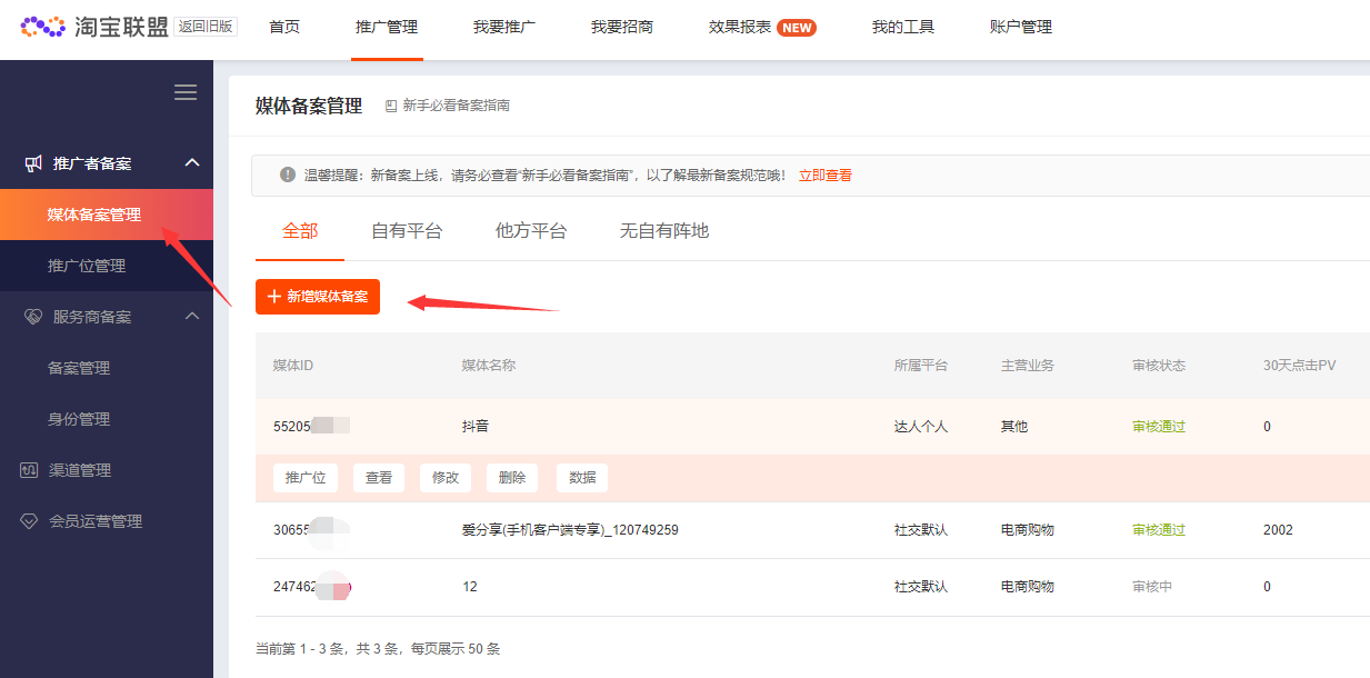 2)选择左边媒体备案管理,根据提示填写媒体备案相关信息。