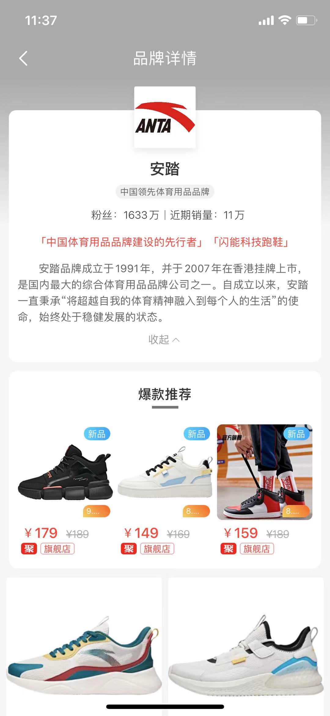 接口说明:该接口返回某个具体品牌的详细信息和推荐商品