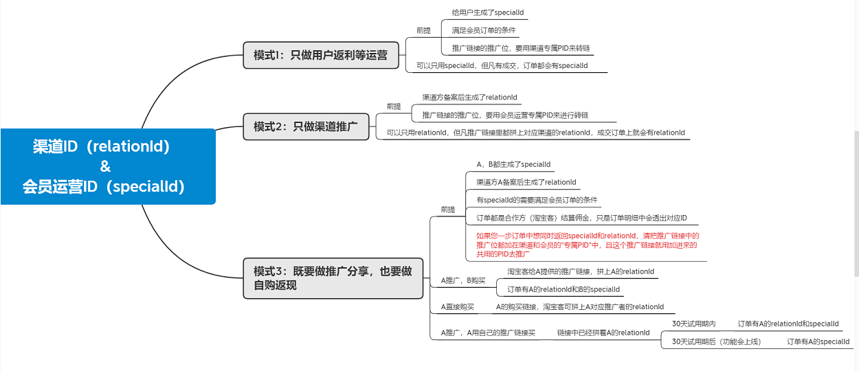 3)渠道关系ID(即relationId)的定义:指对合作方对应渠道的唯一标识码,一个渠道方在不同的合作方下会生成不同的渠道关系ID,作为其在该合作方下进行推广效果的识别。