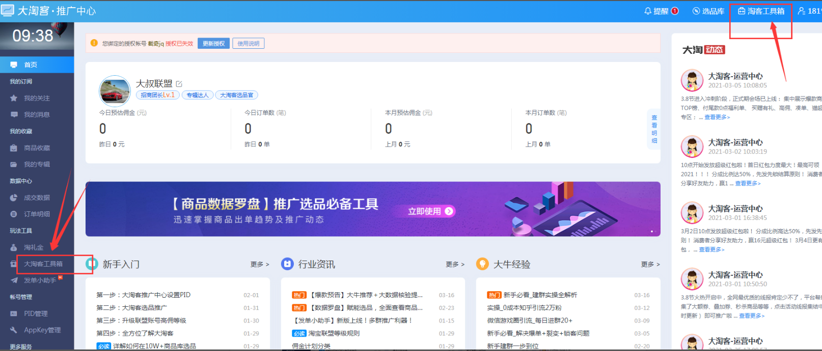 二、大淘客工具箱入口