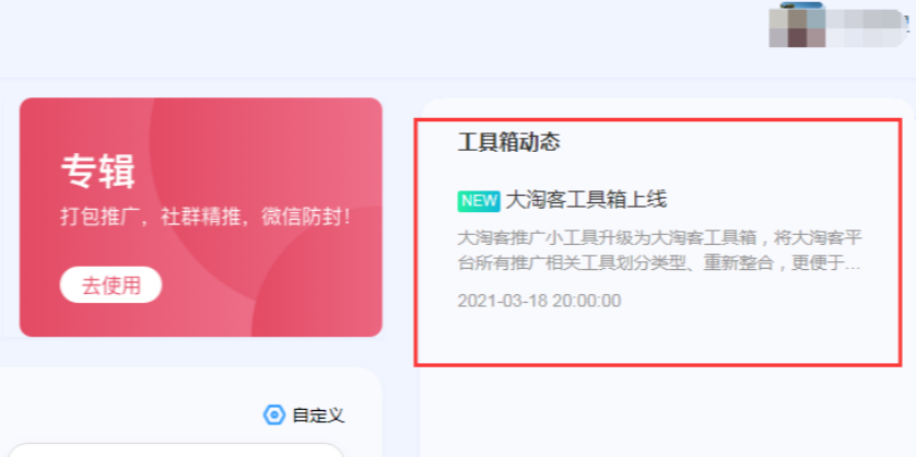 大淘客工具箱里的各个推广工具有更新将在这里通知,时刻关注掌握大淘客最新动态哦!