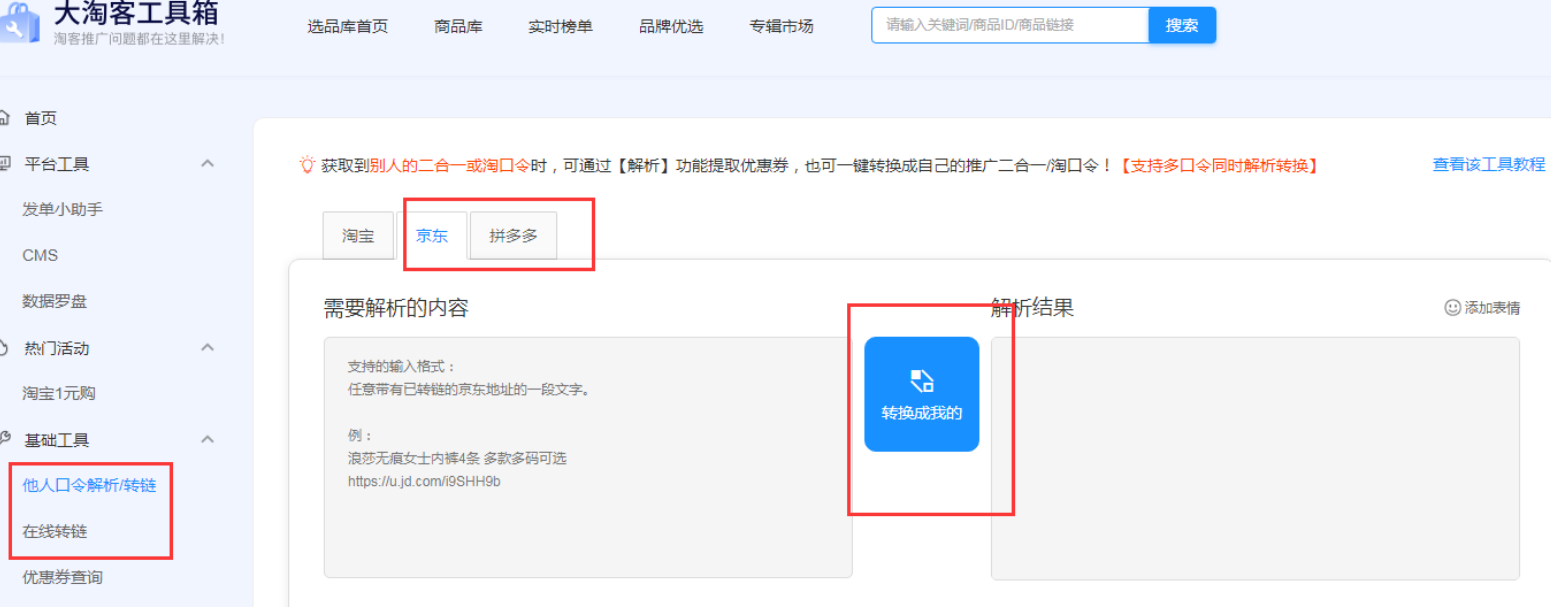选品后需转链、查询优惠券,来这里就可以啦_他人口令解析/转链、在线转链、优惠券查询。