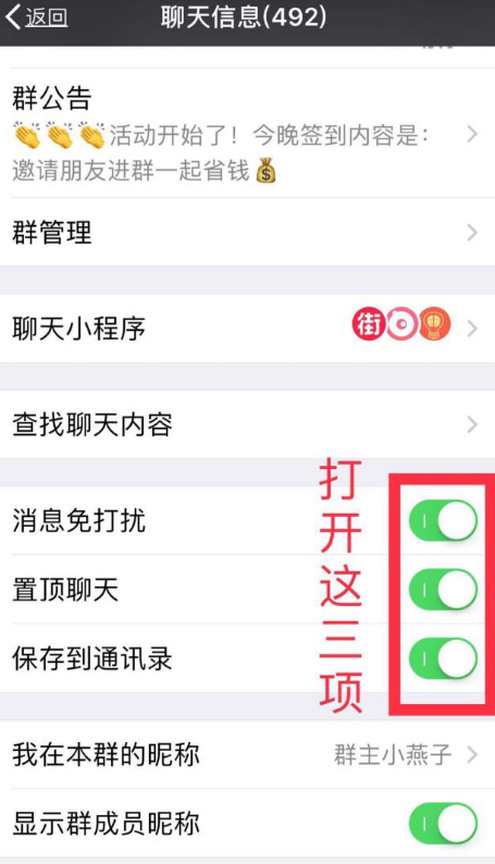 因为我们那要在群里面跟他们互动对不对,有的时候他们会咨询价格呀,咨询产品,我们也会往群里面去派发这个内部的优惠券,那么平时消息比较多,所以让他们设置群消息免打扰的模式,避免他们觉得信息打扰导致退群。