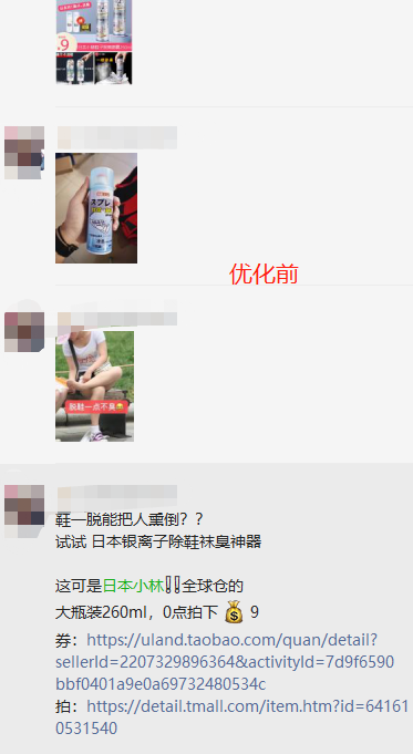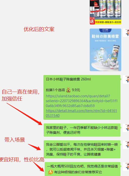 大家看看优化后的文案是不是更有购买的欲望,但这个不是标准格式哈,商品不同文案格式也不同。其实我们要做的就是去商业化,是以朋友的身份,把粉丝当成我们的朋友。把好东西以朋友的口吻去推荐出来就可以了。而不是粉丝觉得,我们是一个商人或者是一个纯粹的机器人。