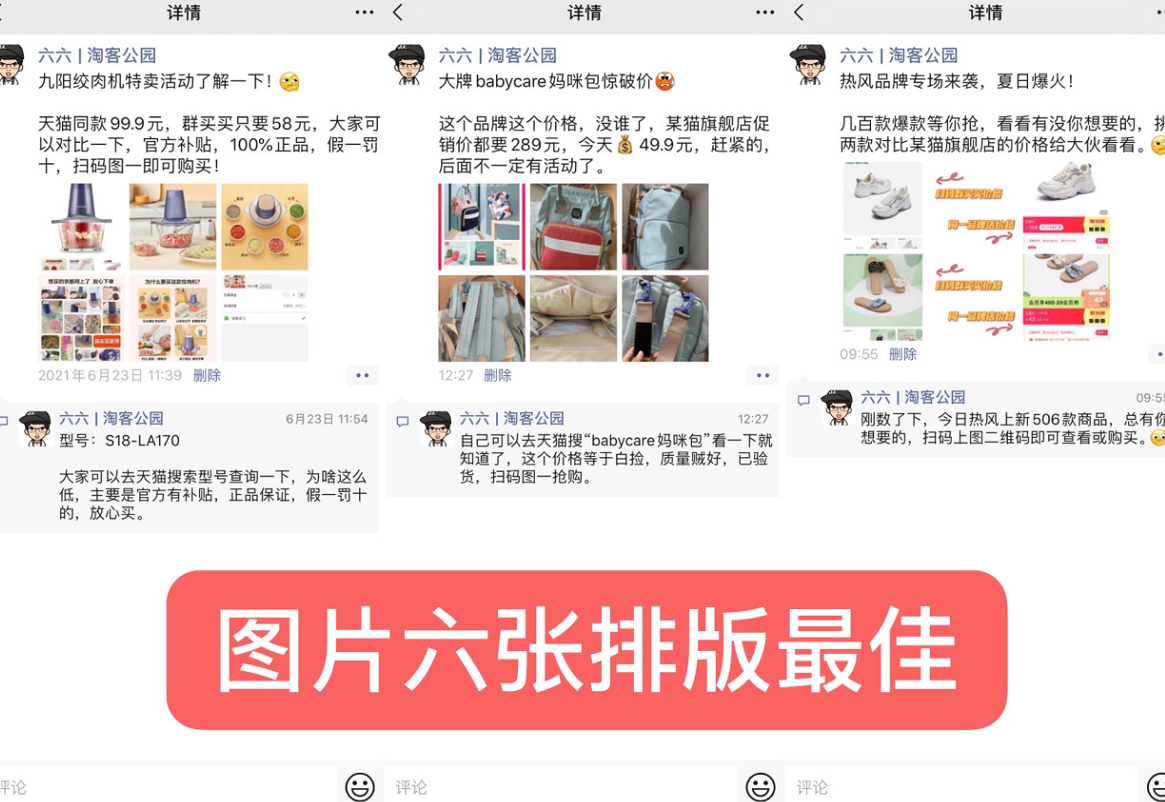 知道了这2个点,那么,我们接下来就在这2个点上面做工作,一款商品可以通过3条朋友圈来做推广,这3条朋友圈的文案都不要一样的,否则会被限流。
