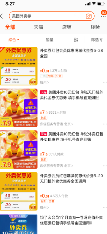 3、找商品文案、图片;文案或者图片可以直接在淘宝、闲鱼直接输入相关词语搬运别人的,例如直接搜索美团外卖券。然后直接搬运别人的,也可以自己制作,如果要自己制作的话建议参考别人的排版来,排版和展示很重要。