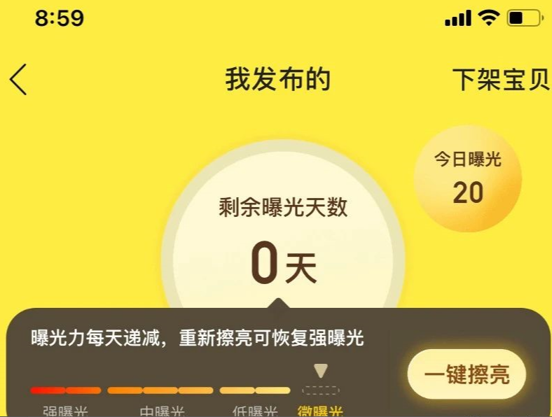 3、擦亮商品;闲鱼商品要记得及时擦亮,不要让曝光度降低下去。