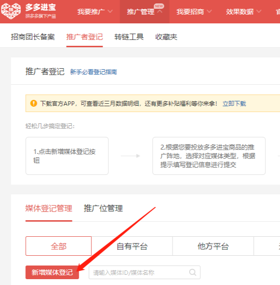 1、点击推广管理-推广者登记