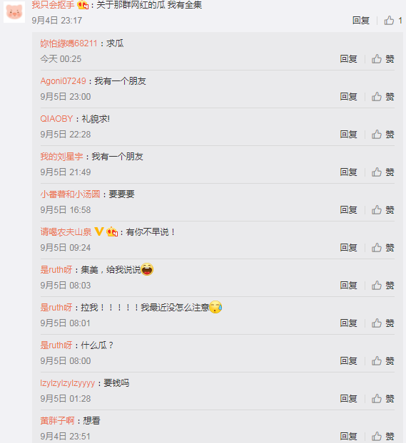 2、关注一些欣慰、例如最近的赵薇事件等。或者一些热门类目的大V,定时刷新,直接评论吃瓜微信XXX,或者我有吃瓜群,加我。