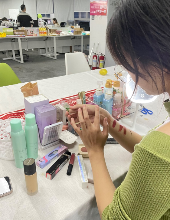 (为了更全面的了解产品,yoyo在给不同肤质的同事试用)