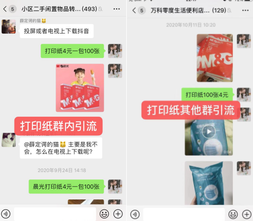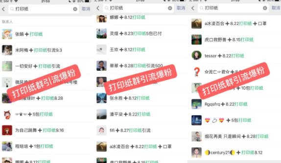 二手群有一些是主动加你微信你拉入,但是还有一部分是邻居间互相拉入,是没有你的微信的。那么我们想让这些人能快速加你,当时我首要选择的就是利用打印纸及口罩进行引流