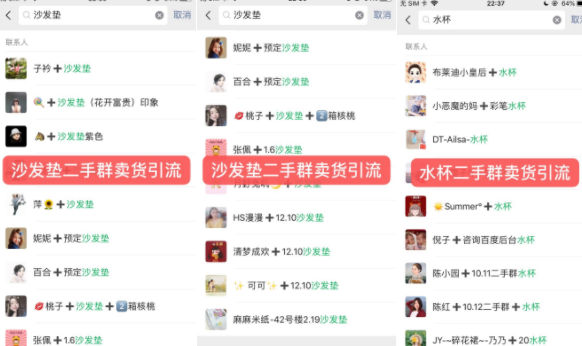 二是引流拉入群,主要就是你用这些群,作为引流的入口,把其他群里的人拉进这个群,比如二手群跟砍价群效果比较好,现在每个家里的闲置物品特别多,前期我就是进了我们小区2个二手群。
