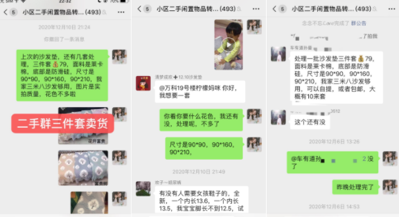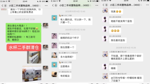 比如,在孕妈群,经常有宝妈发,之前买的什么东西,现在不想要了,多钱出,我马上就跟上,我这里有咱们小区的二手群,我可以拉你进去