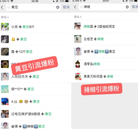包括当时我还利用家里的农作物,比如黄豆、玉米、辣椒都在这些社群里面发,价格稍微低于市场价,每次都能引流来很多人主动添加,并且还能帮家里人赚些钱