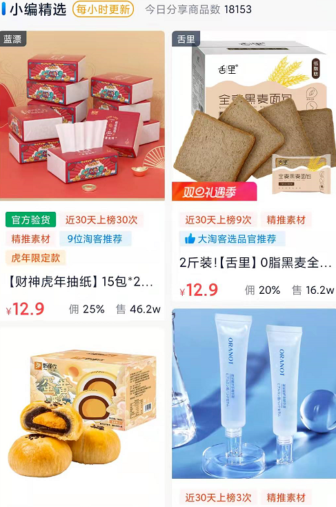 🔺此类商品我们放在APP选品板块排序第5-8个,并且每小时更新,具有爆款潜力的优质好单,大家可放心推广。