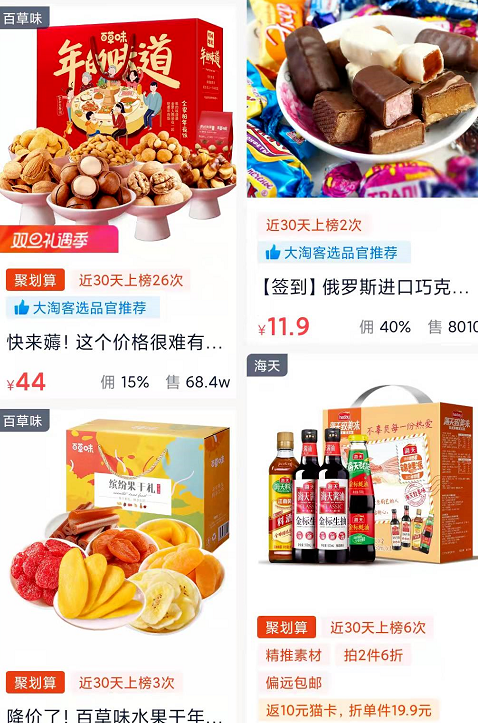 ⭕精选淘抢购、聚划算等超高折扣商品,绝对的价格优势,刺激消费者购买欲。