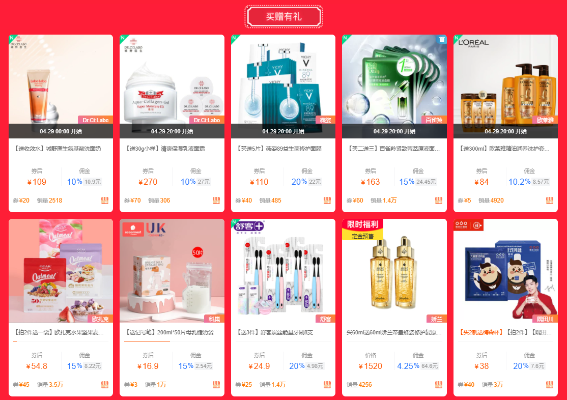 节日期用户购买率最高的活动之一,平台将集合此类商品,配合买家囤货、薅羊毛心理。