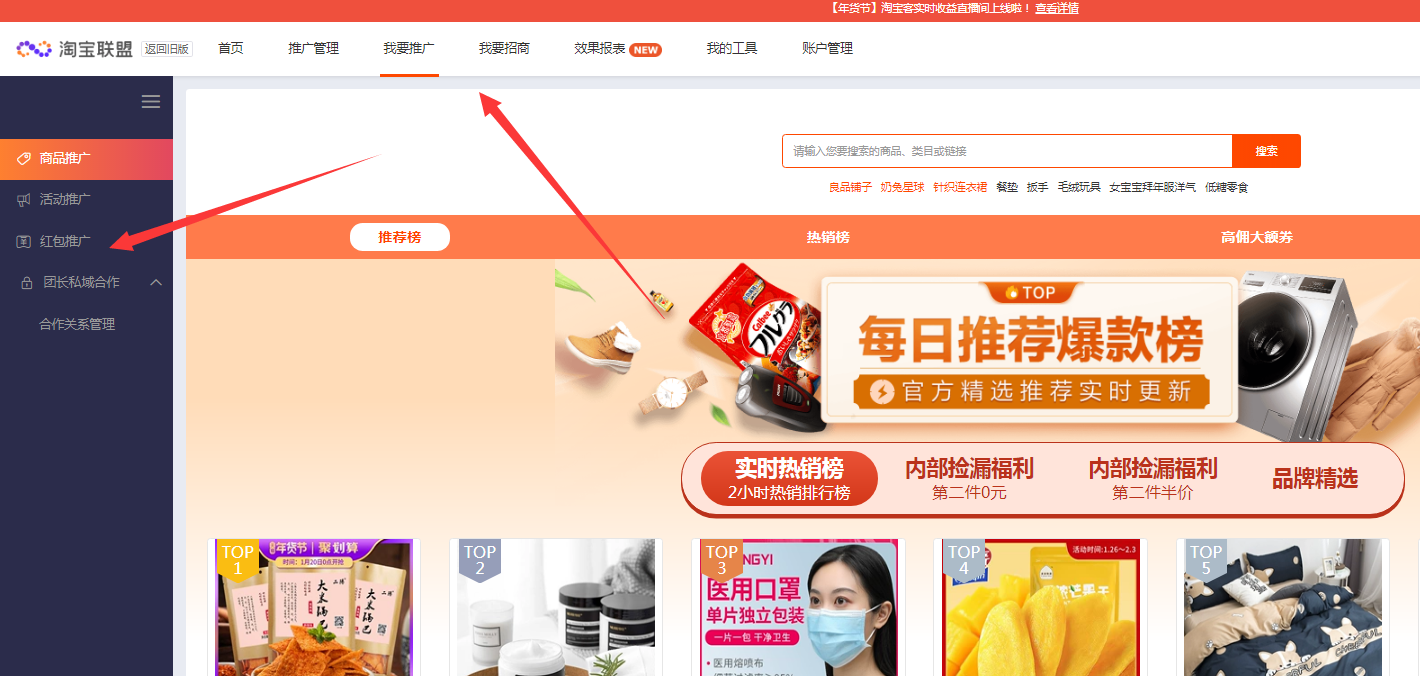 登陆淘宝联盟后台——我要推广——红包推广(如下图1)——立即推广——获取推广链接——设置推广途径——获得链接推广(如下图2)。