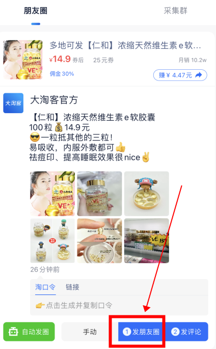 朋友圈是现实社交在网络世界的延伸,也是个人获取信息的重要渠道。在社交电商的时代,朋友圈也早已成为淘客朋友们的另一战地。想在朋友圈发单,绞尽脑汁编写文案、排版格式?全网搜寻图片素材?大淘客APP想你所想,在推荐版块新增精选素材支持一键发朋友圈的功能!