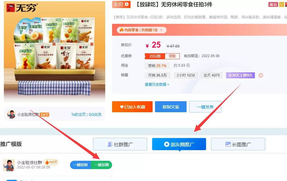 素材由放单人提交+官方人工精选,更贴近买家思维,一键发圈更易爆单!商品库推广素材筛选朋友圈素材,进入商品详情页即可一键将选好的商品推广至您的朋友圈。