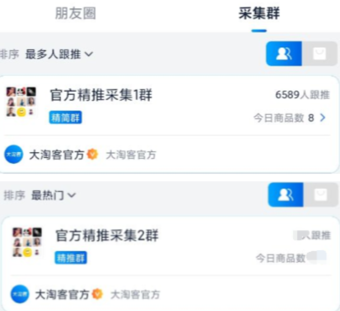 官方采集群已有1w+用户跟推、GMV日均30万。此次升级对官方精推采集1群进行优化,同时新增官方精推采集2群(商品来源:素材圈),均是人工精选由专业选品团队每日精选,丰富的精细化素材,精准推广。